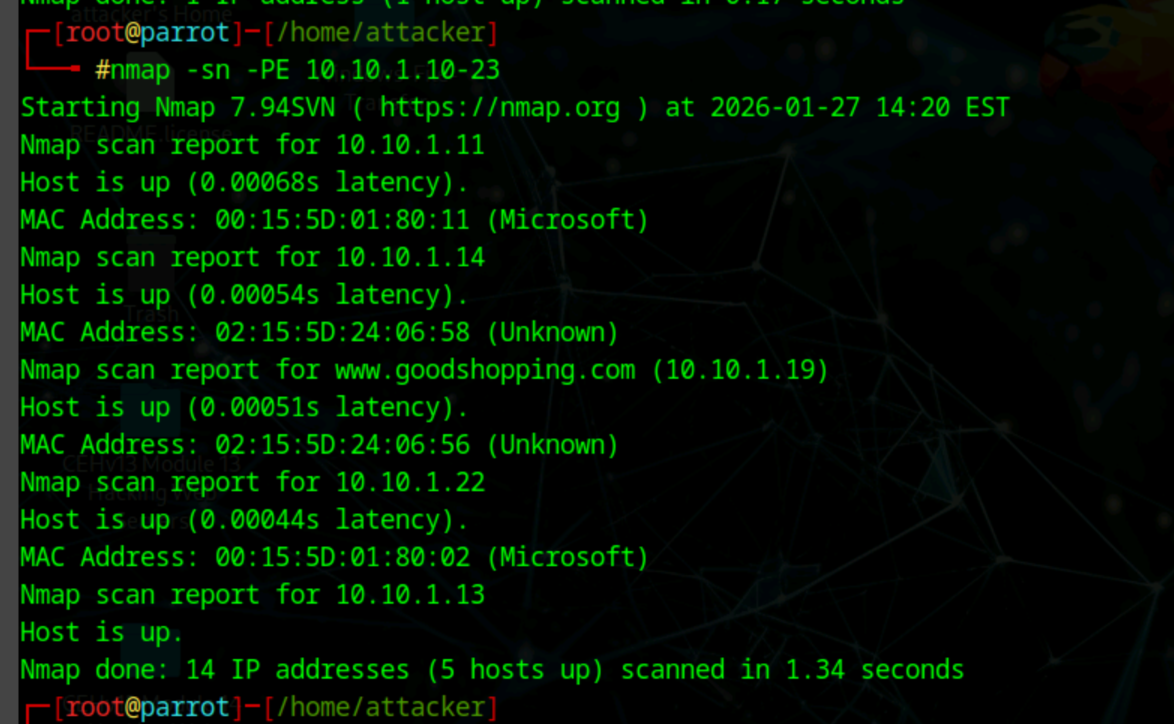 -PE range | ICMP ping sweep | Find live hosts in subnet | “identify live hosts”, “range of IPs” |